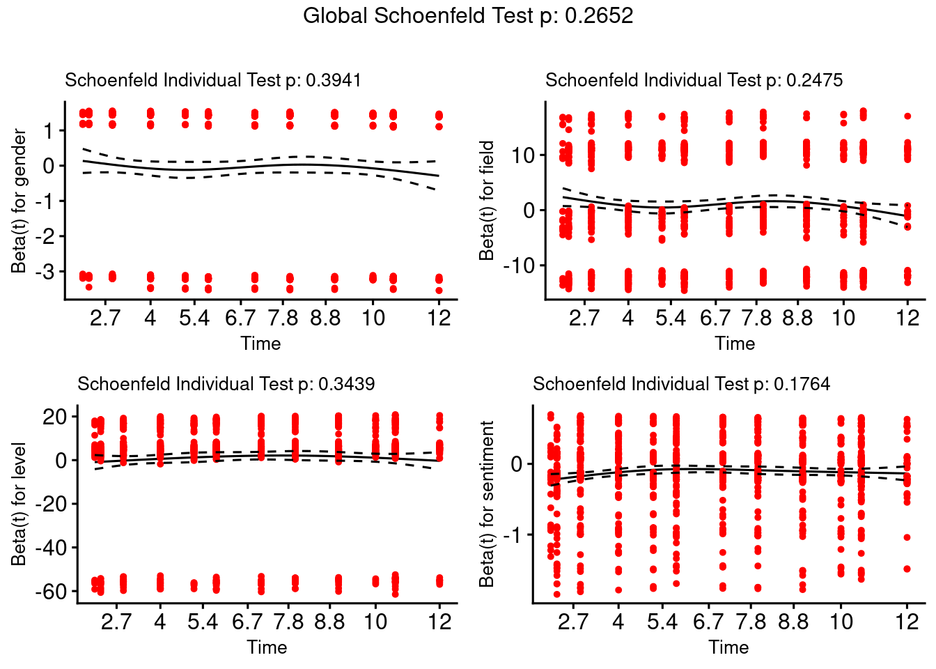 Figure 10.2: Schoenfeld test on proportional hazard assumption for cox_model